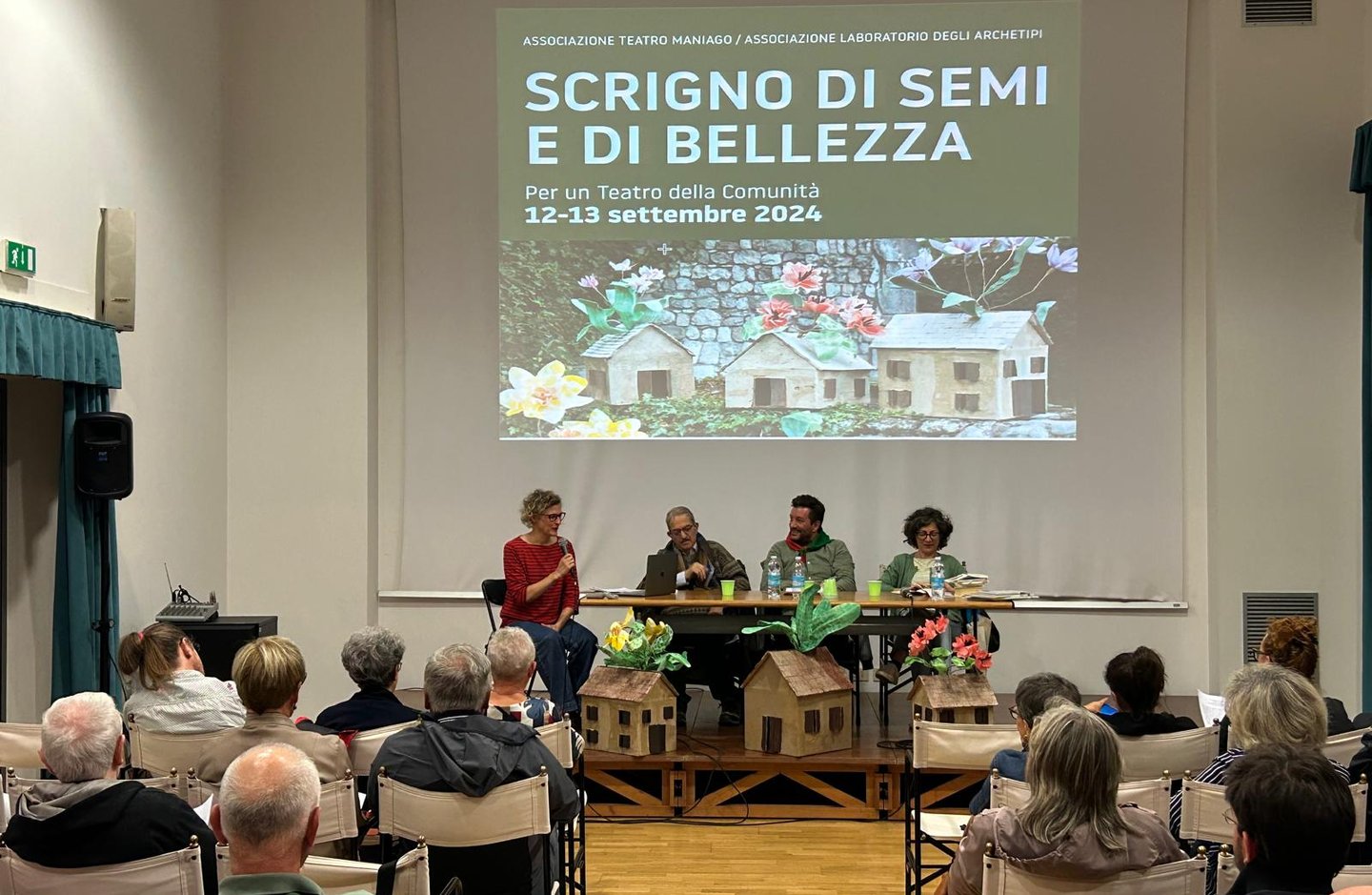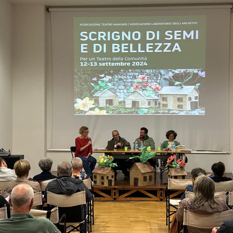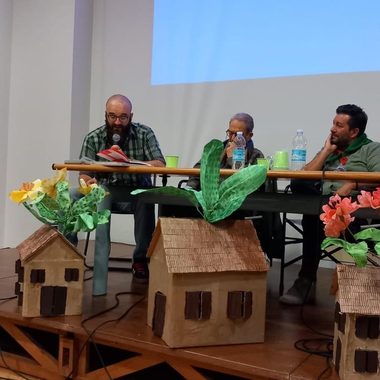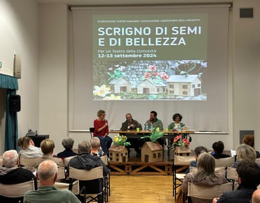 A seguire, Viviana Urban, bibliotecaria appassionata e sensibile, ha proposto un cammino a partire da alcuni meravigliosi albi illustrati dal titolo "Di rose, di spine, di semi - un breve viaggio nella letteratura dell'infanzia che parla di guerra, di dolore e di speranza". Ricordandoci che la letteratura non è consolatoria, ma è piena di speranza, "creando un ponte tra le possibilità dei libri e l'impossibilità della vita", Viviana ha sviluppato il tema della necessità di trovare le parole giuste per parlare di guerra anche ai più piccoli. Parole e immagini che arrivino a tutti, proprio come è avvenuto con la creazione della nostra azione teatrale.
