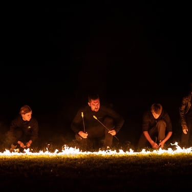 “Semi di luce e di bellezza” è il frutto di questo gioco serio quanto la guerra. Dalla devastazione le azioni ripercorrono la storia di morte e rinascita del mondo, riscoprendo l'altra faccia di una natura erogatrice di doni preziosi (Giacomo Camuri).