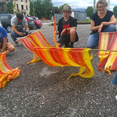 I laboratori di costruzione degli oggetti scenografici si sono svolti presso gli spazi dell'Officina creativa, laboratorio artistico socio-educativo gestito dalla Cooperativa sociale Itaca.